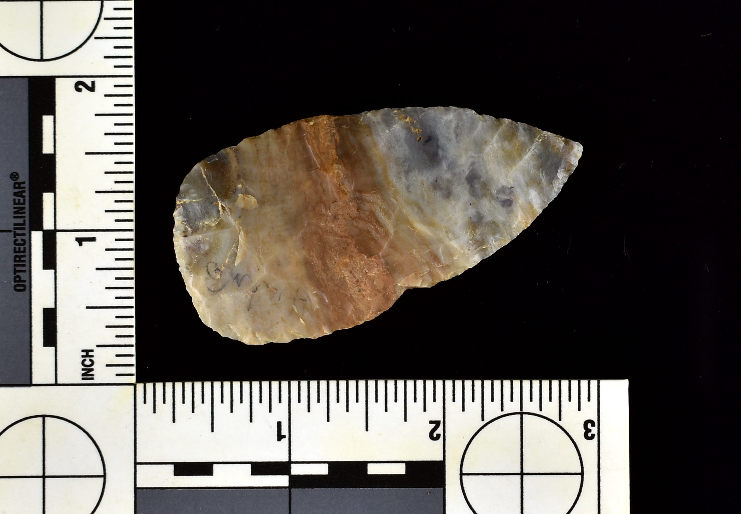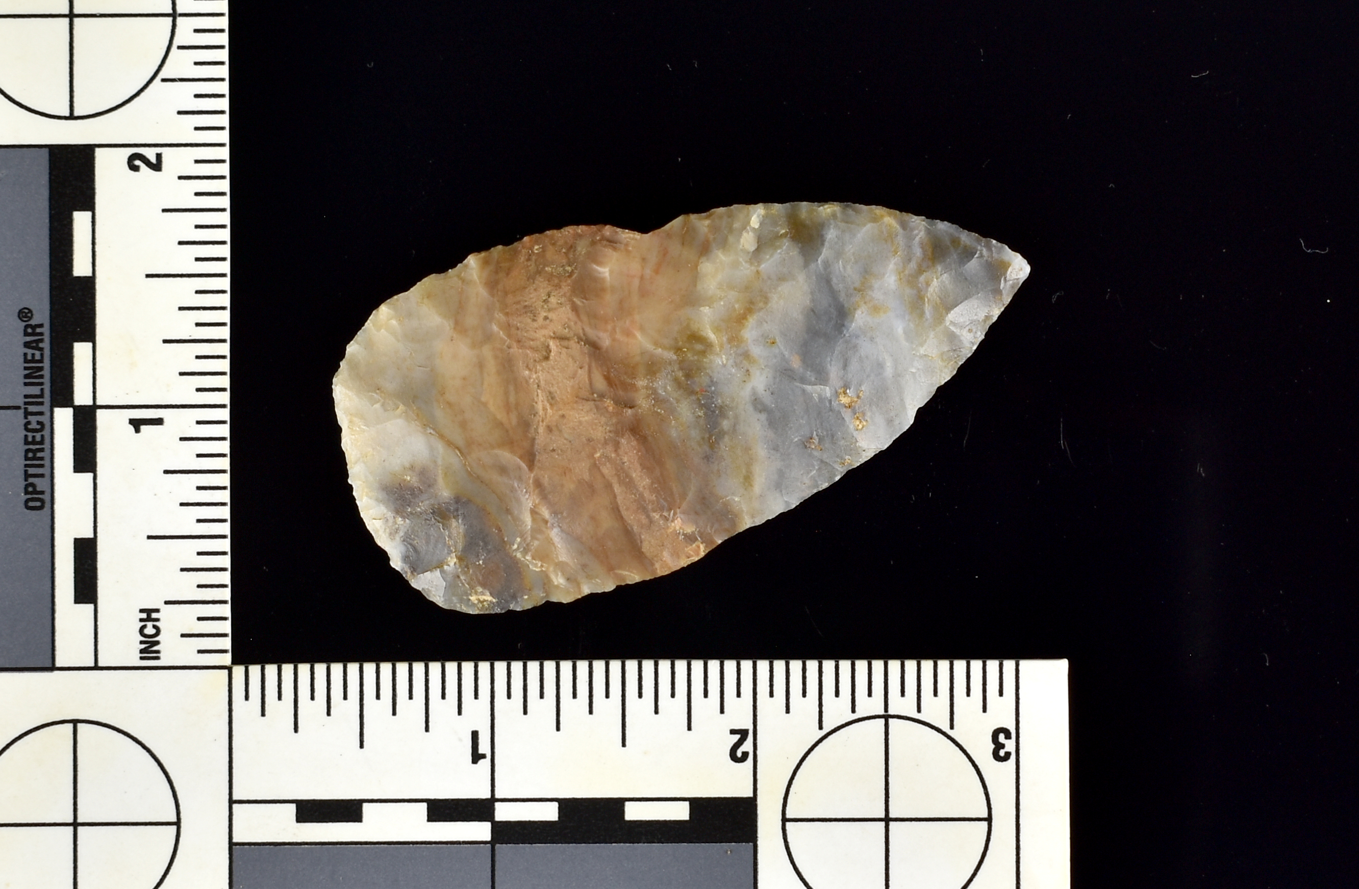 Nice example in multicolored Flint Ridge from Hardin Co., Ohio. Ex – Dr. Jack Knapp Collection. Earthworks (2007) COA.