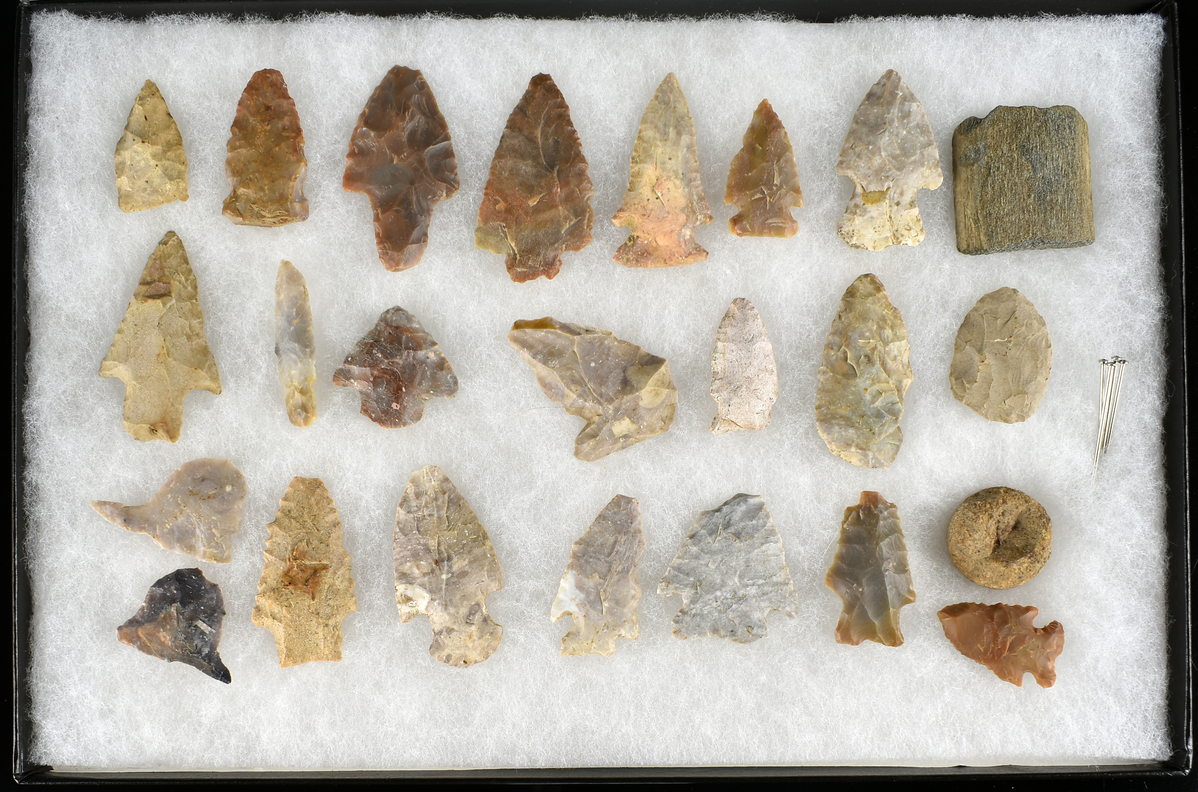 Nice display of points and pieces from Central Kentucky. Ex Ken Robertson. Mix of materials – Carter Cave, Boyle Chert, predominantly.