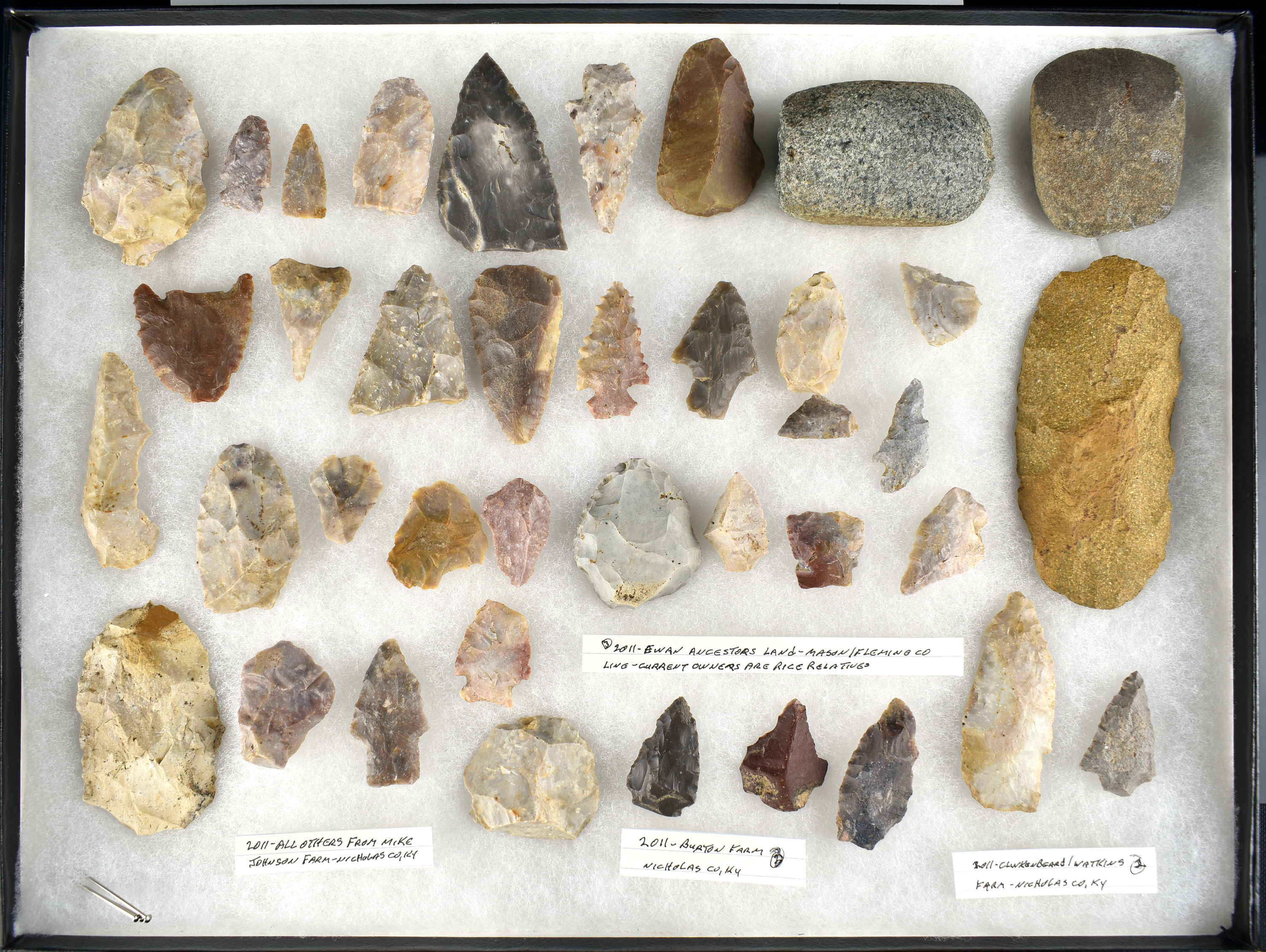 Various materials and types represented. All found by Ken Robertson in Central Kentucky – some groupings are labeled with location. Nice!
