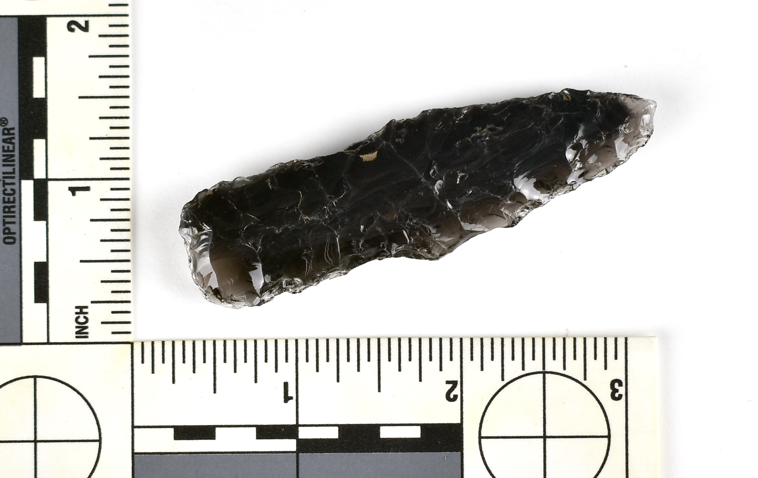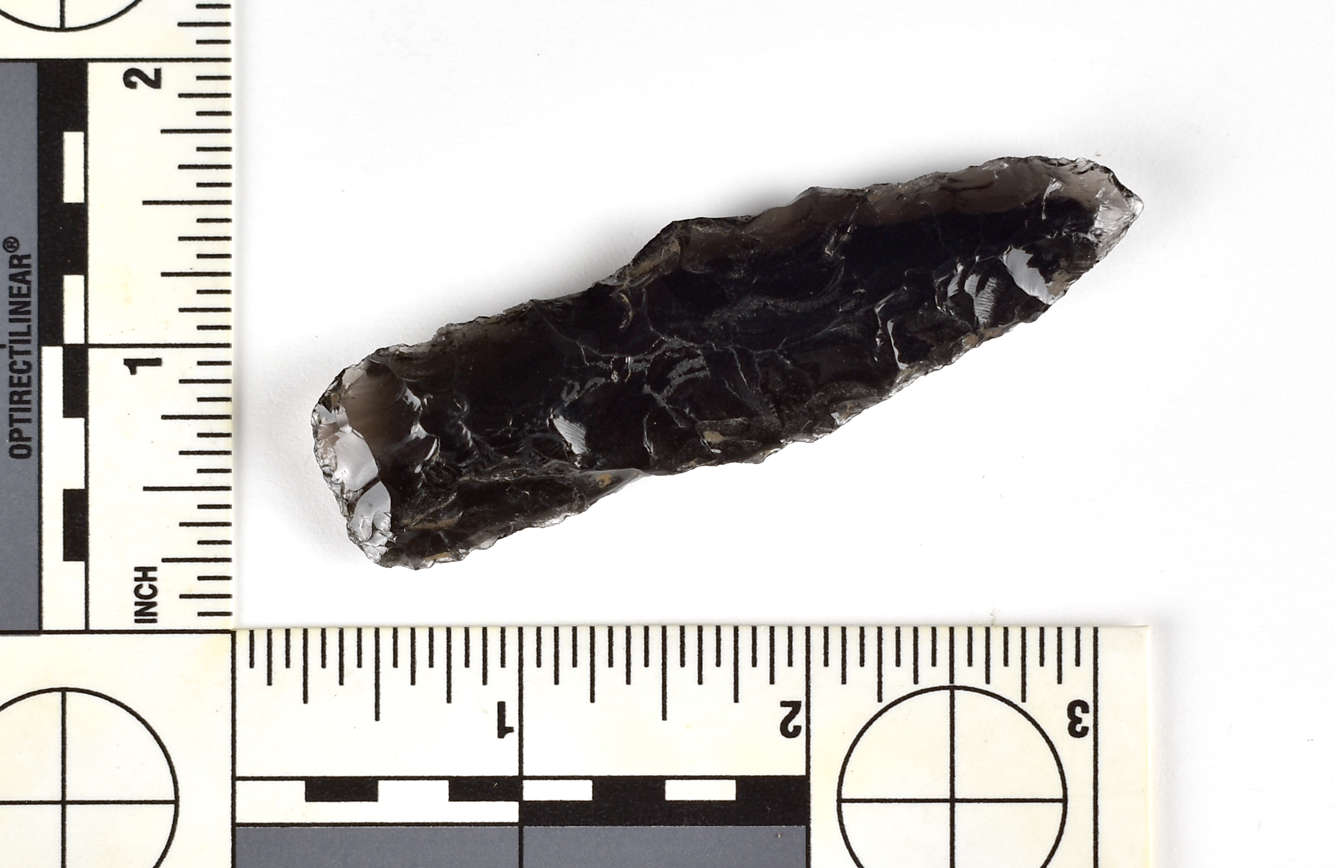 Nice example found at the Humboldt Sinks In Humboldt Co., Nevada by Carl and Chris Thiessen in the late 1940’s-1950’s. Obsidian. Stermer (2004) COA. Includes an abstract from a former owner.