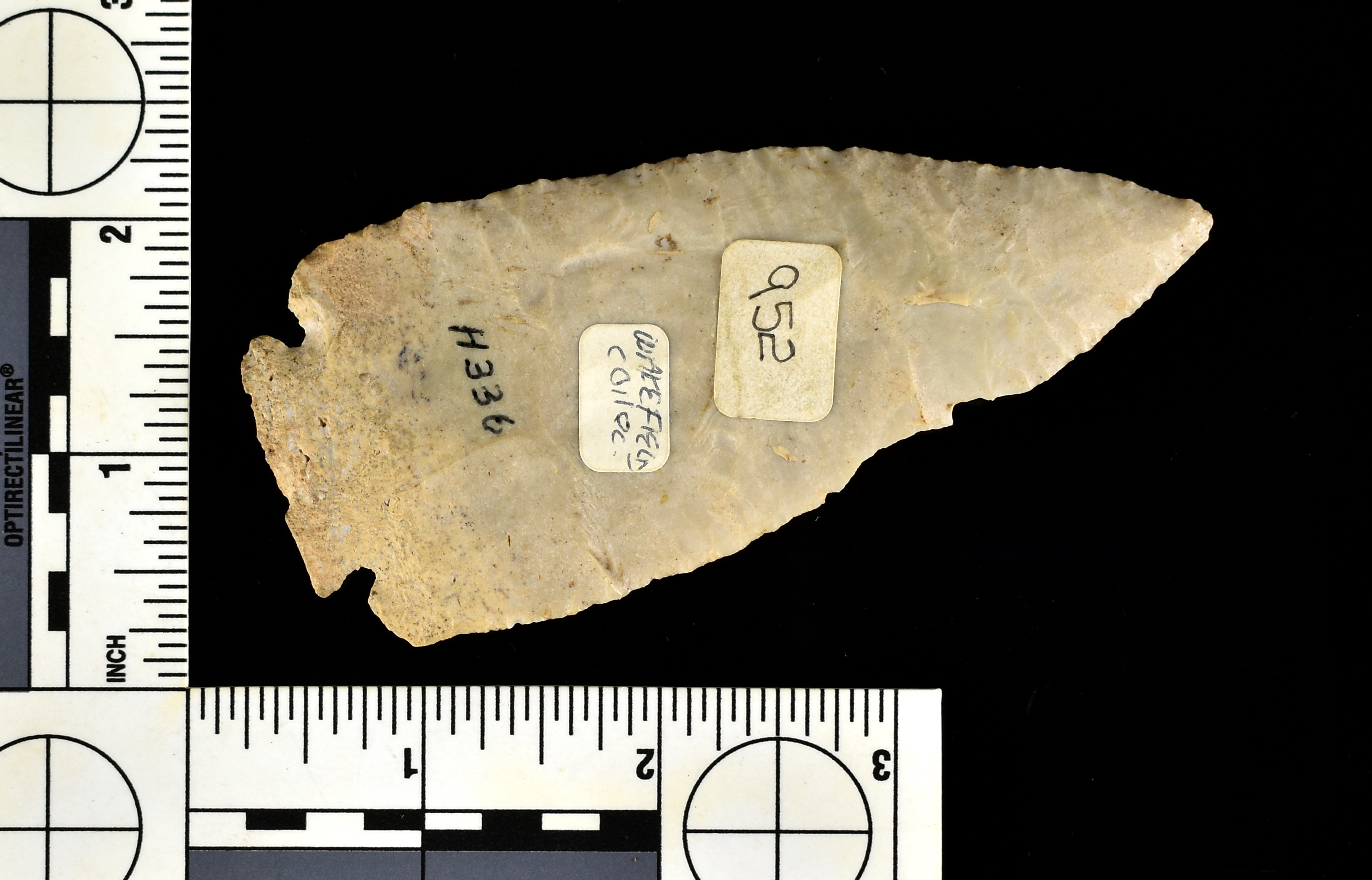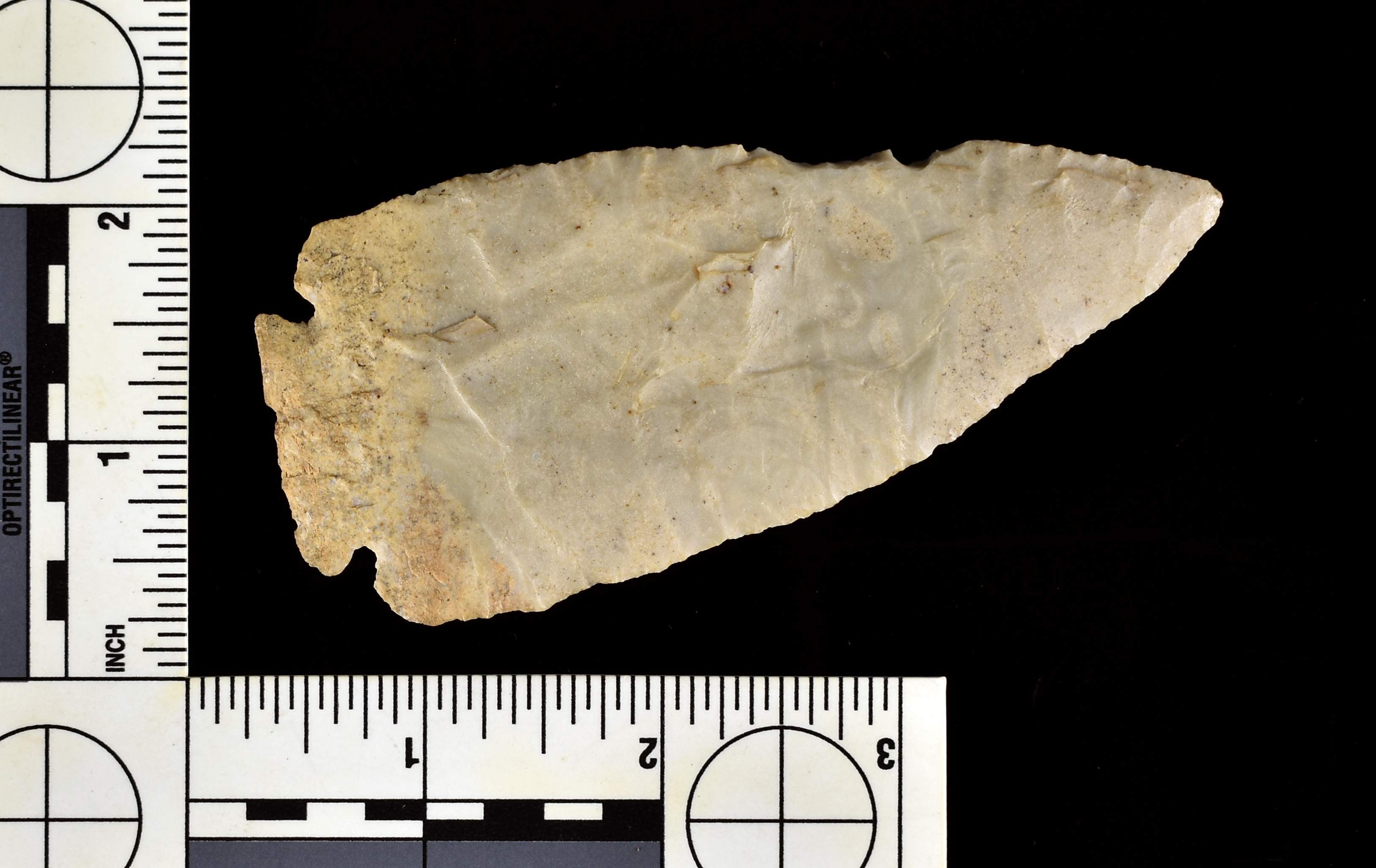 Superb classic Decatur point from Scioto Co., Ohio. Formerly of the Al Wakefield, Mike Barron, and Crumgine Collections. Cream fossil chert example with a Jackson COA from 2003.