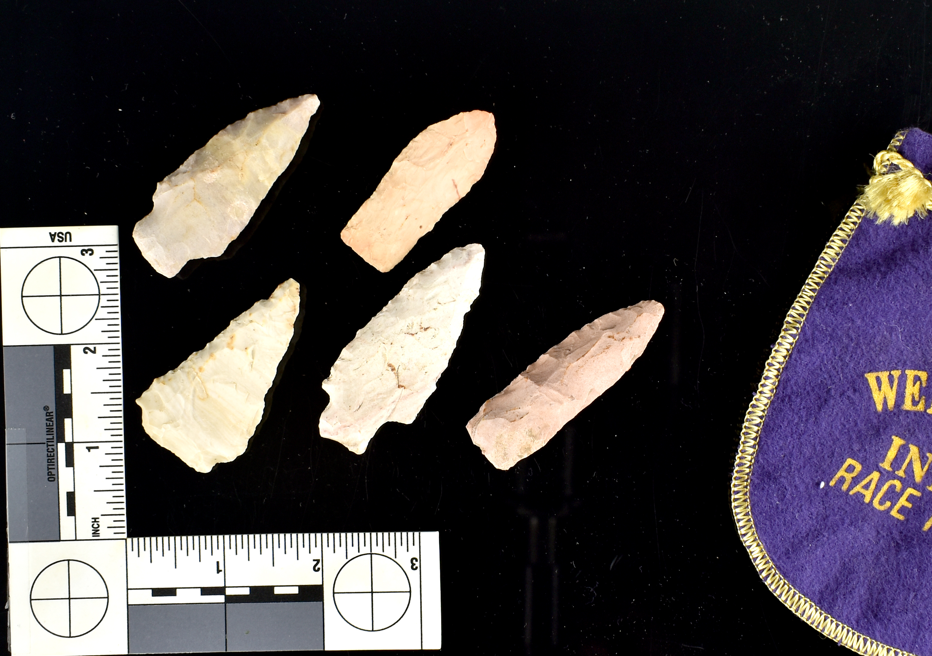 5 Nice Indiana Arrowheads with bag