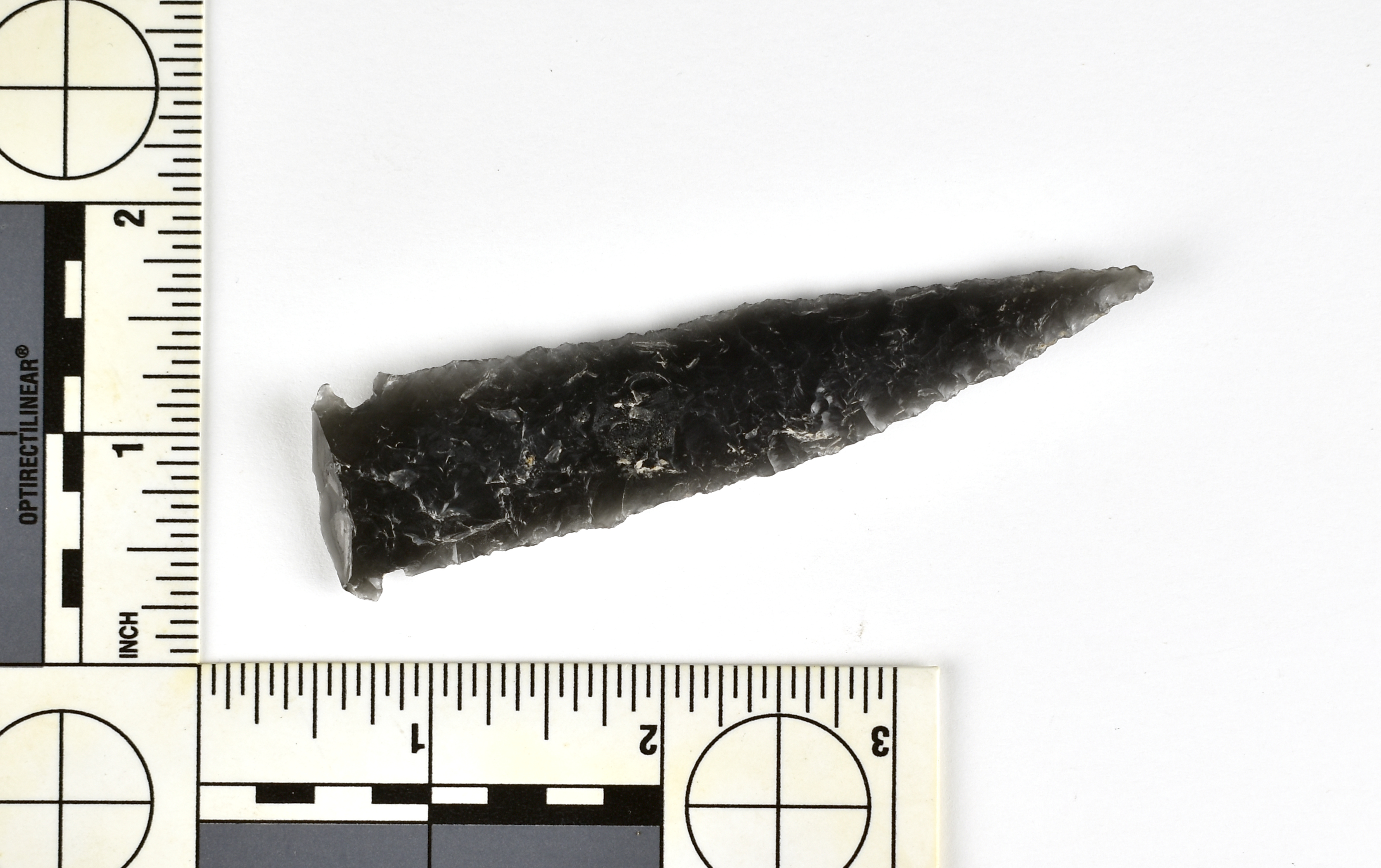 Slender obsidian piece found at Crump Lake, Lake Co., Oregon. Ex Milton Tuck, Dr. David Aptecker Collections. Stermer (2007) COA.