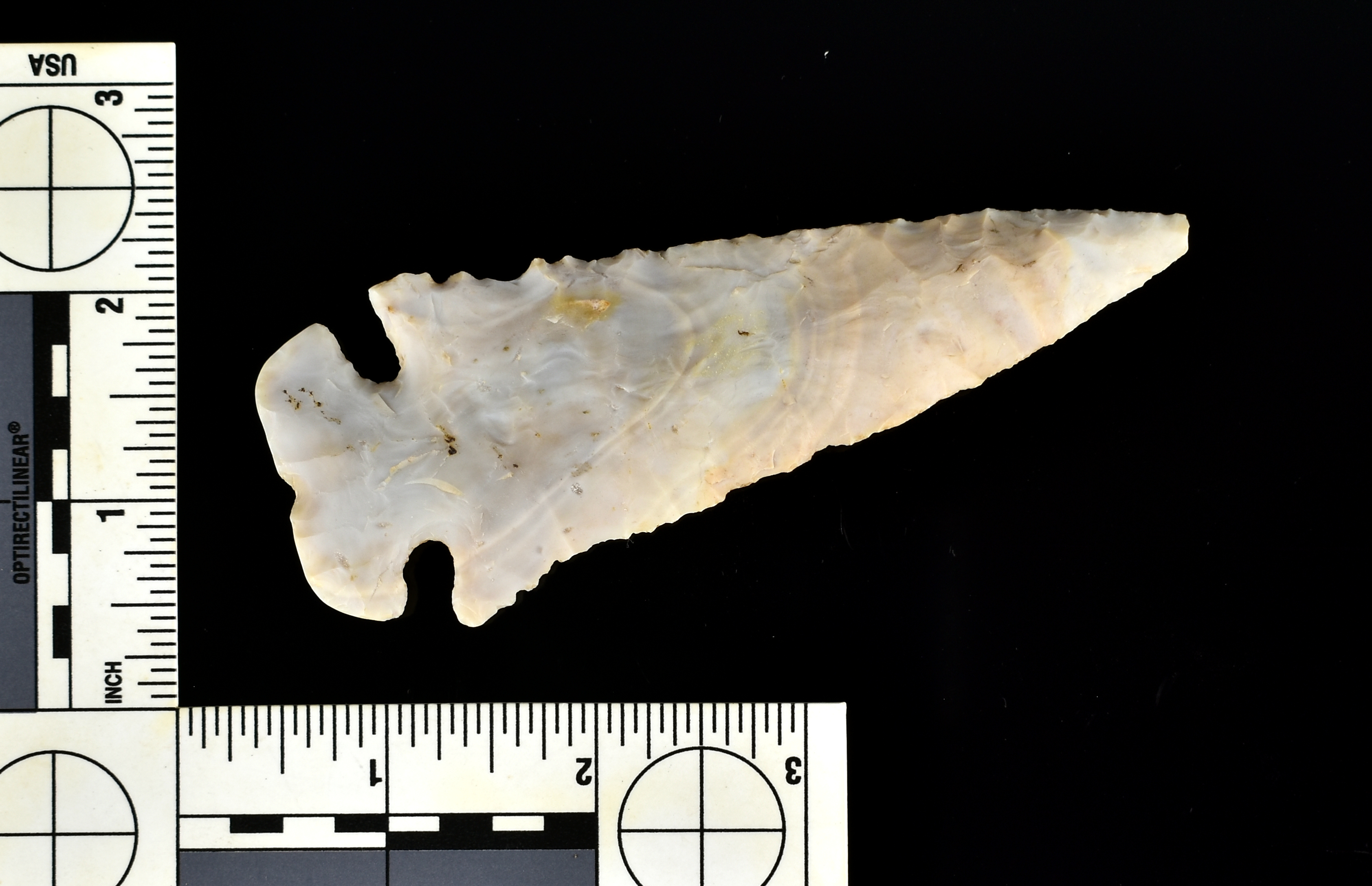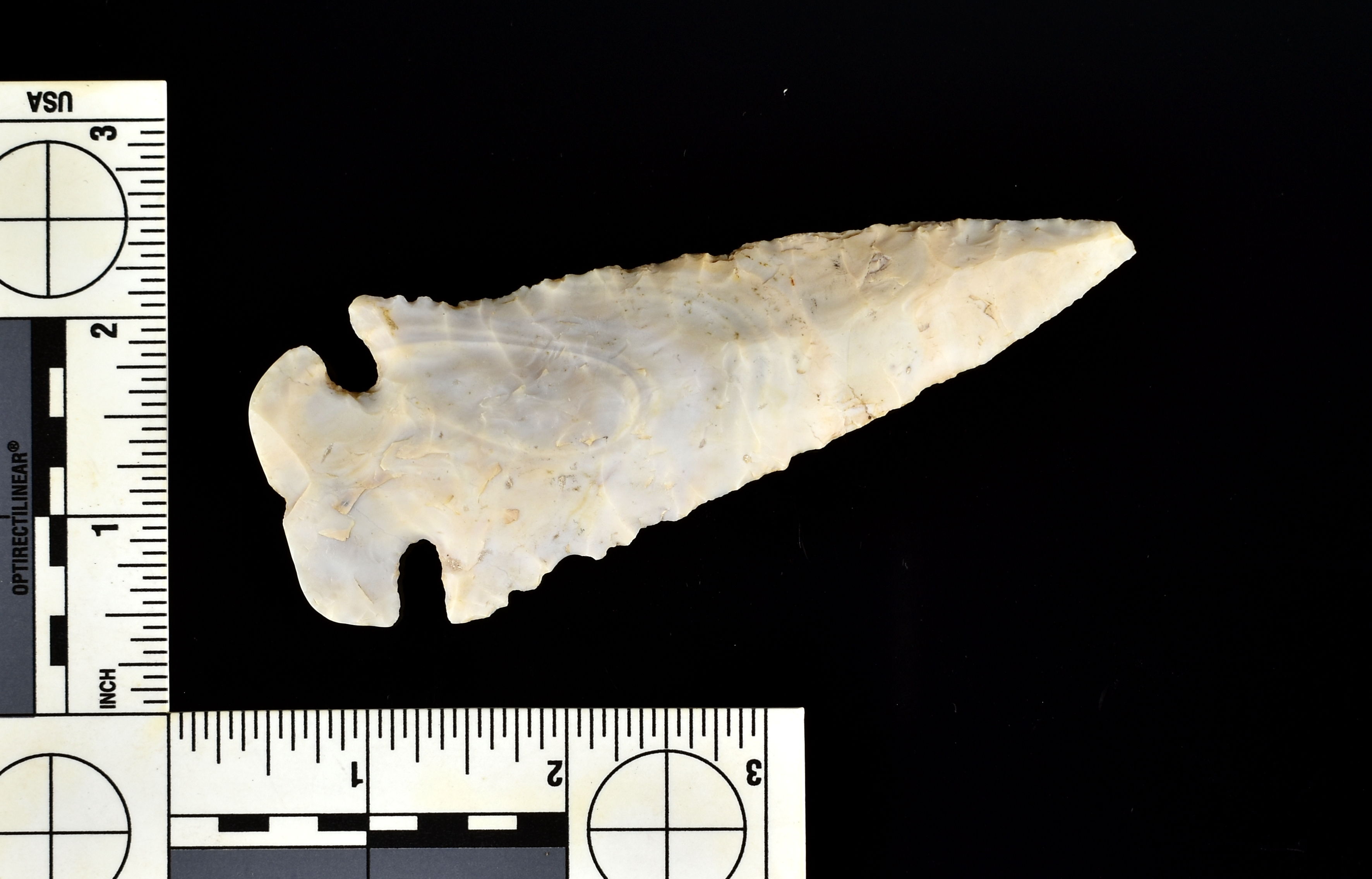 Fantastic example from Pickaway Co., Ohio in cream/gray Flint Ridge! Formerly of famed Charles ‘Modoc’ Smith’s collection. Earthworks (2003) and Howard (2006) COA’s. Loaded with mineralization too!.