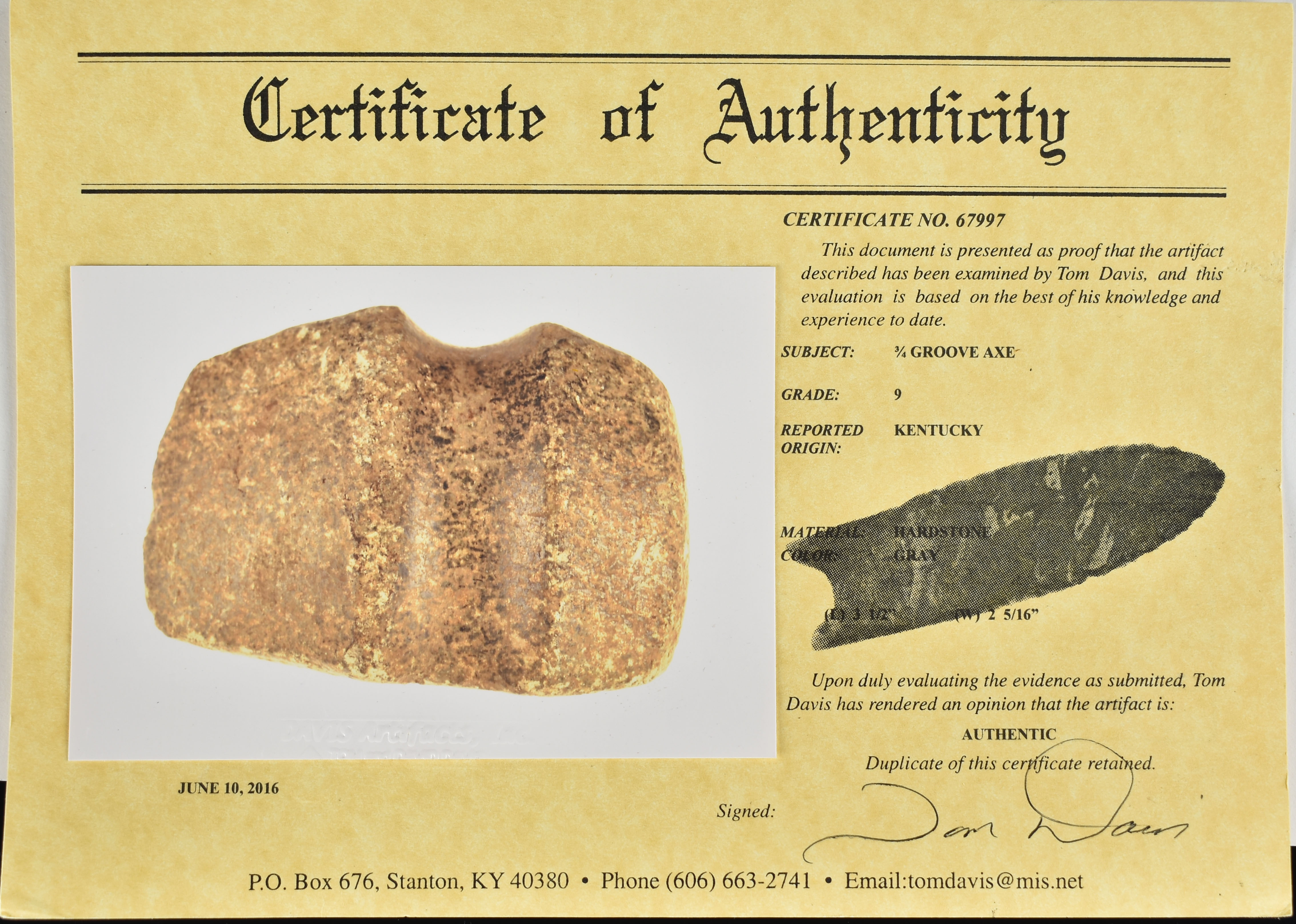 3-3/8" 3/4 Groove Axe Davis G-9 COA