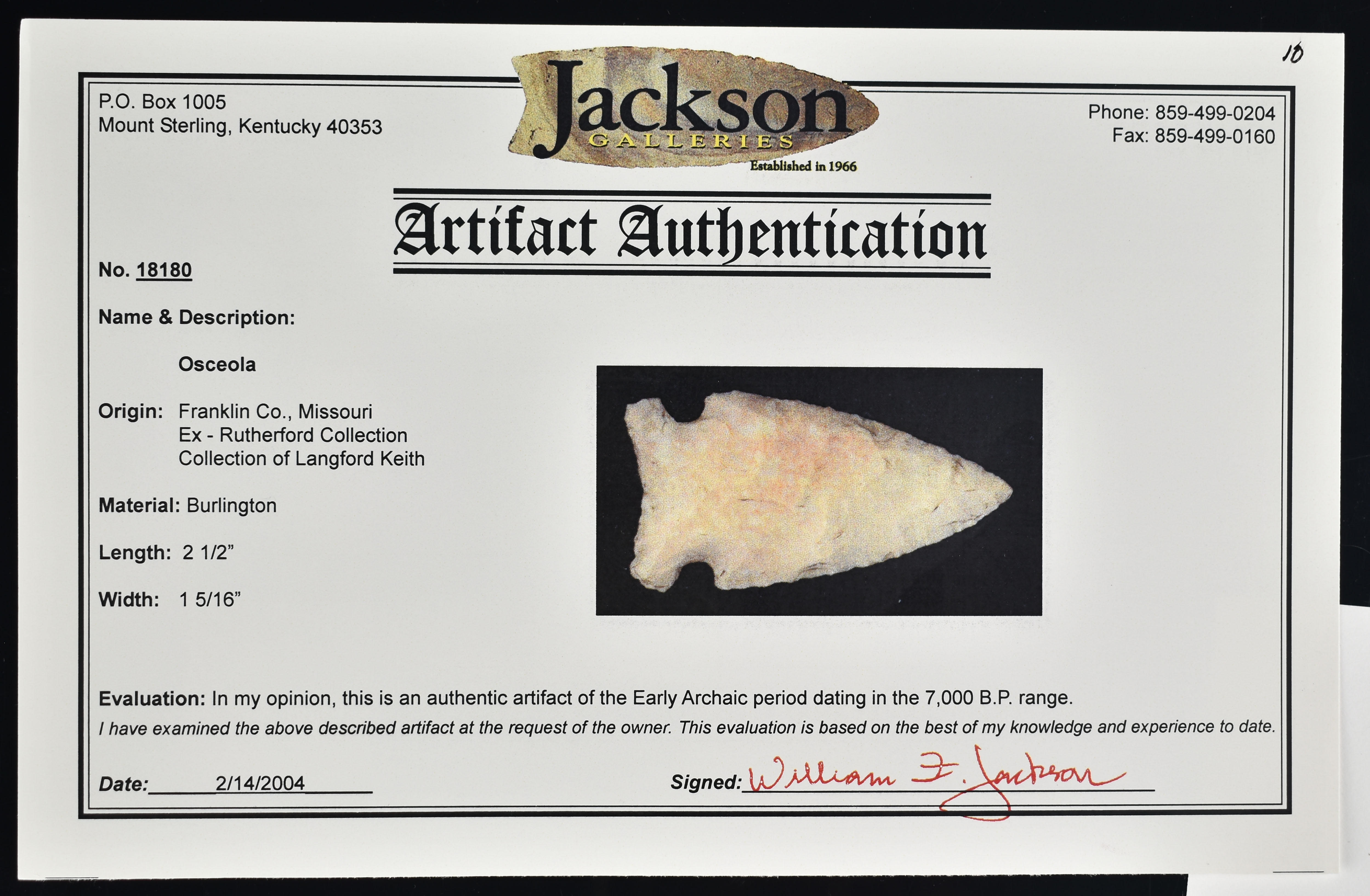 Franklin Co., Missouri example found by Dale Rutherford. Burlington Chert. Ex – Langford Keith Estate Collection. Jackson COA from 2004.