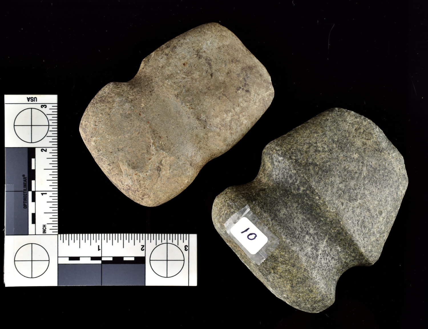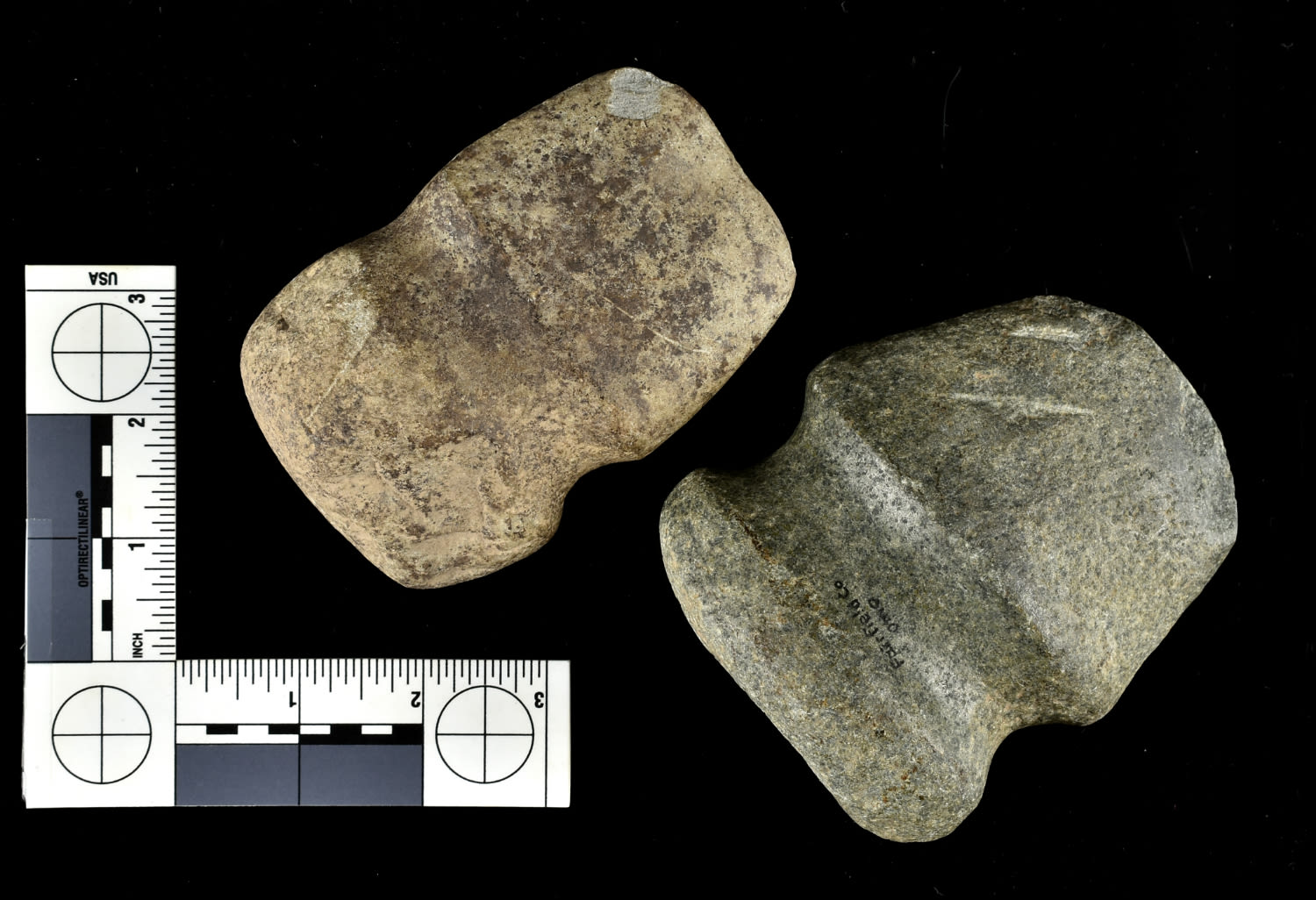 Nice pair of full groove axes in Green Diorite and Green Speckled Granite. Ex Martin McKibben collection.
