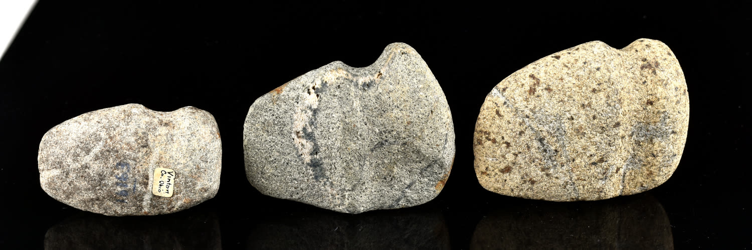 Nice lot of three axes totalling 2lb-2oz. Marked from Vinton and Athens Counties in Ohio. Ex Martin McKibben Collection. Varied materials. All three sit upright for display.