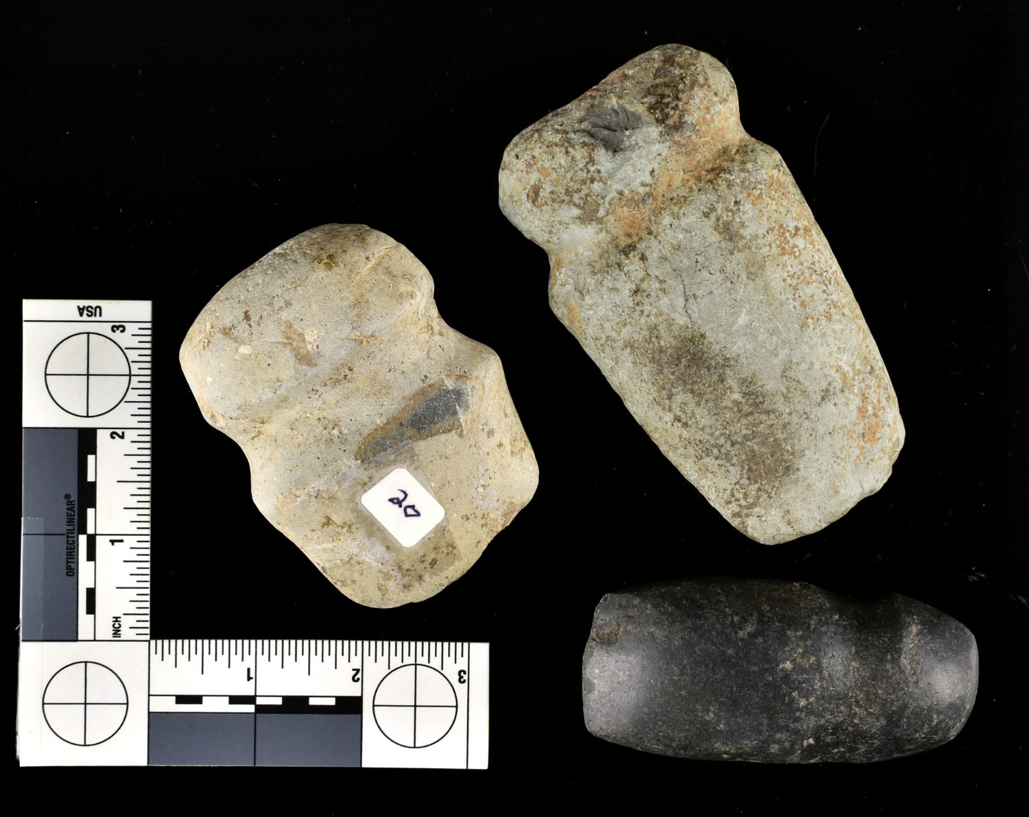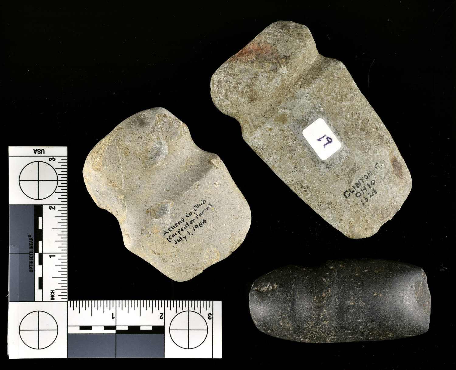Clinton Co., Ohio. Athens Co., Ohio. And one appears to be a Hohokam form from Arizona. All appear to be Diorites. Ex Martin McKibben Collection.