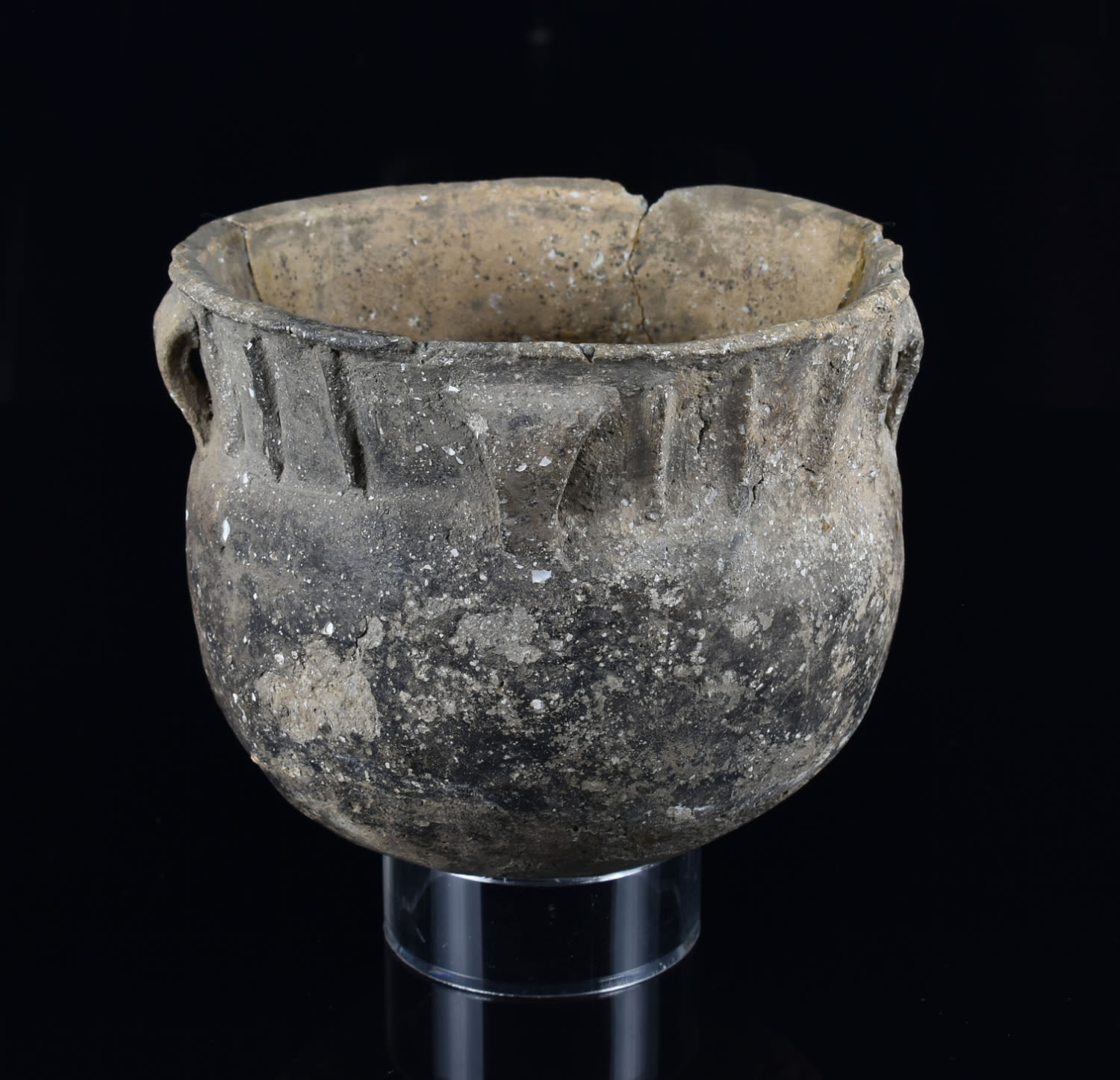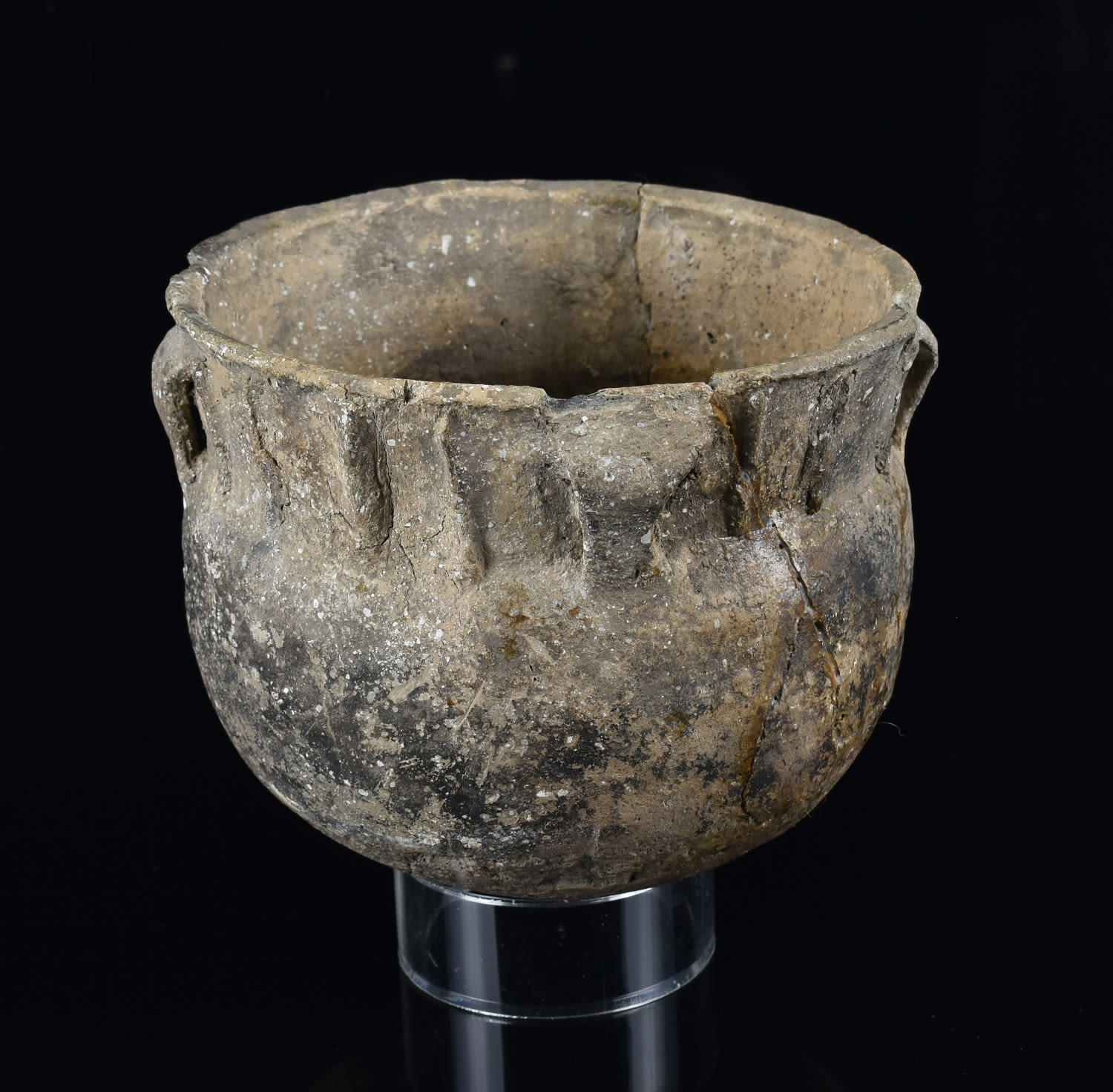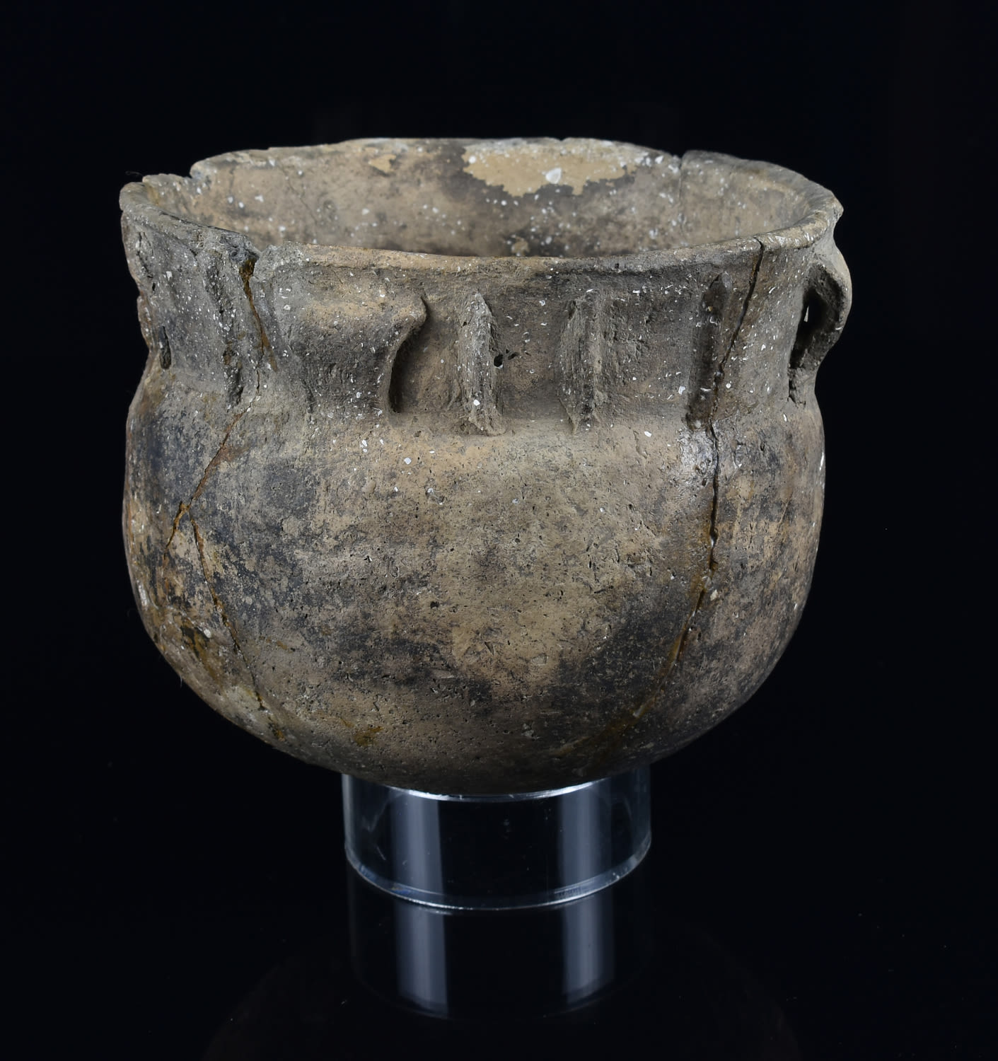 Repaired/Restored example from Arkansas in Shell Tempered Clay from the Martin McKibben Collection. Sits well on a shelf!