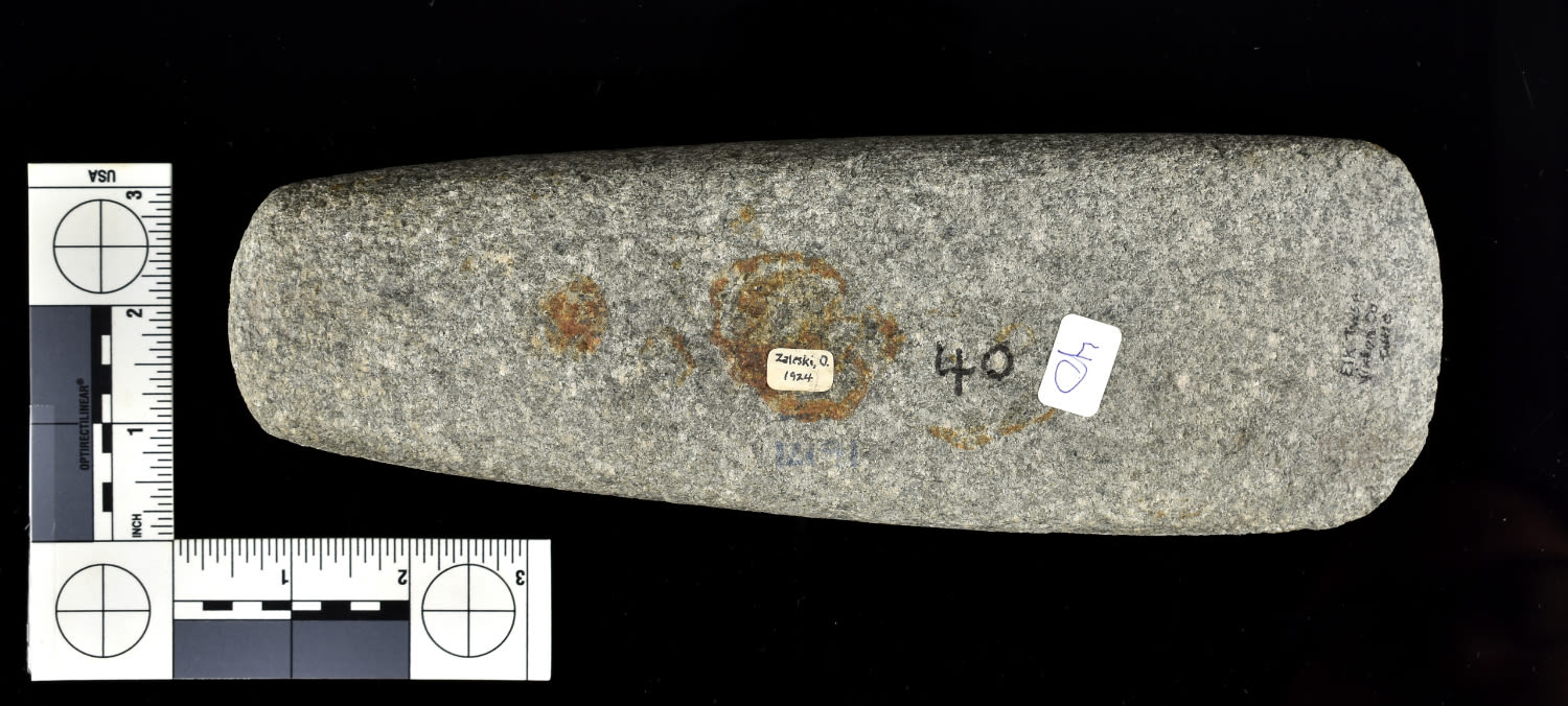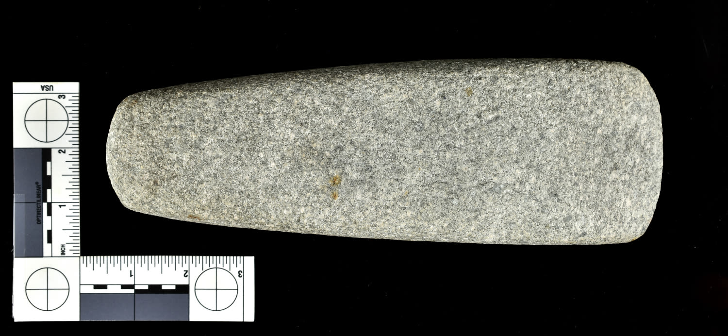 MASSIVE 10" long celt marked as recovered in Elk Township, Vinton Co., Ohio. Ex Martin McKibben Collection. Huge piece of granite weighing in at 4lb-9.5oz