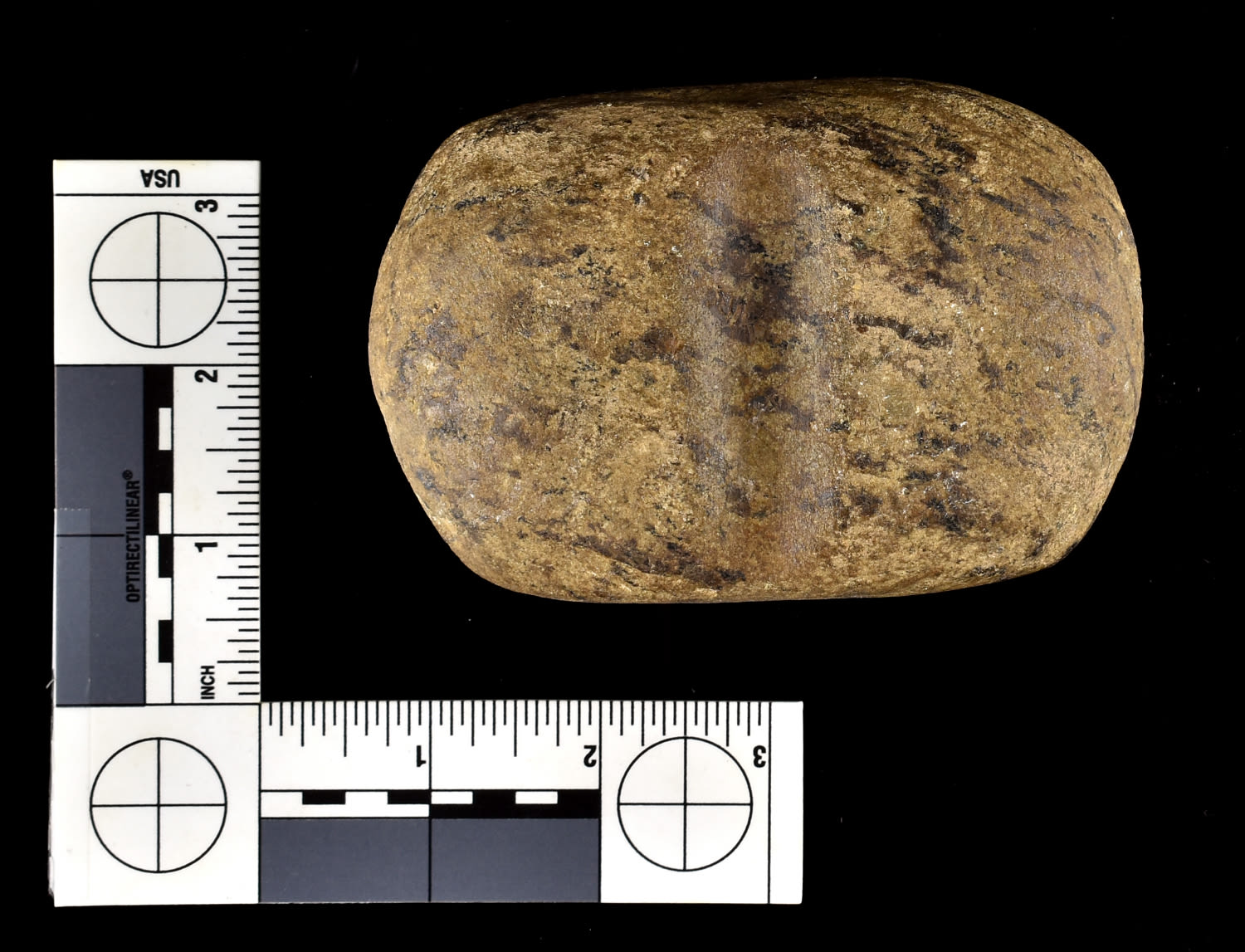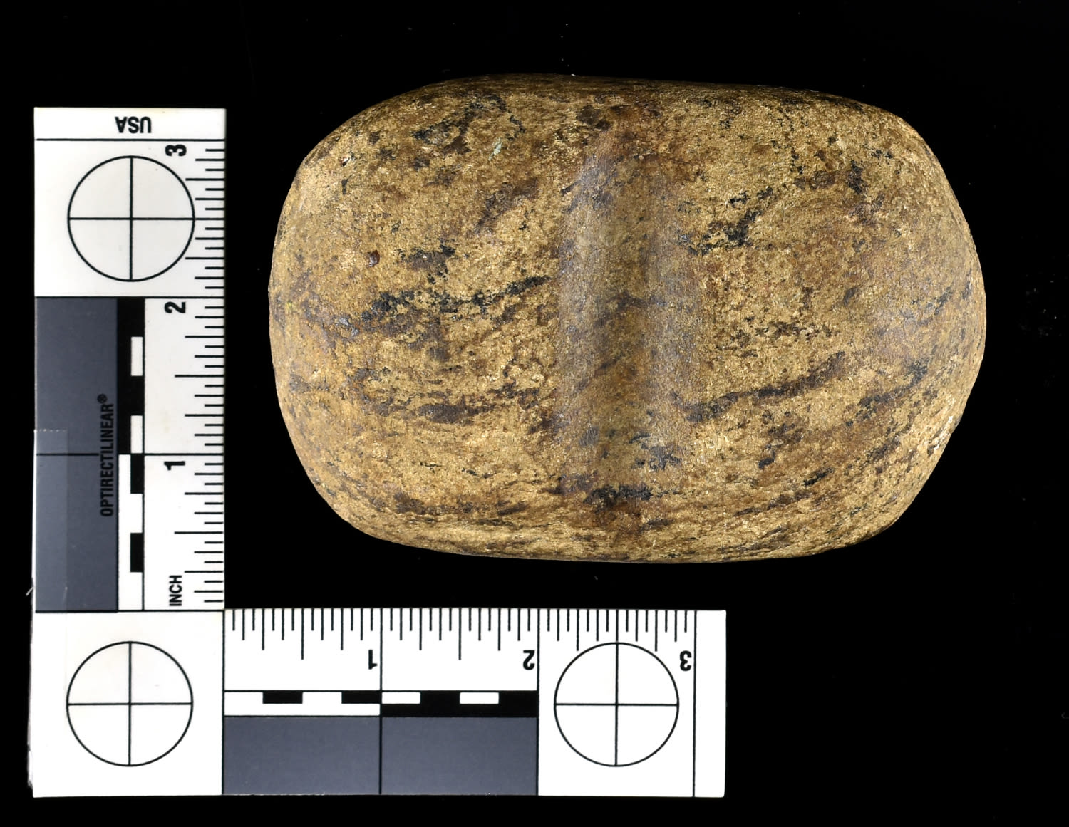 Excellent Gneiss example from the Martin McKibben Collection. Looks like the highly polished side flutes have been started and the pecking to begin drilling has started on one side. Rare to see!