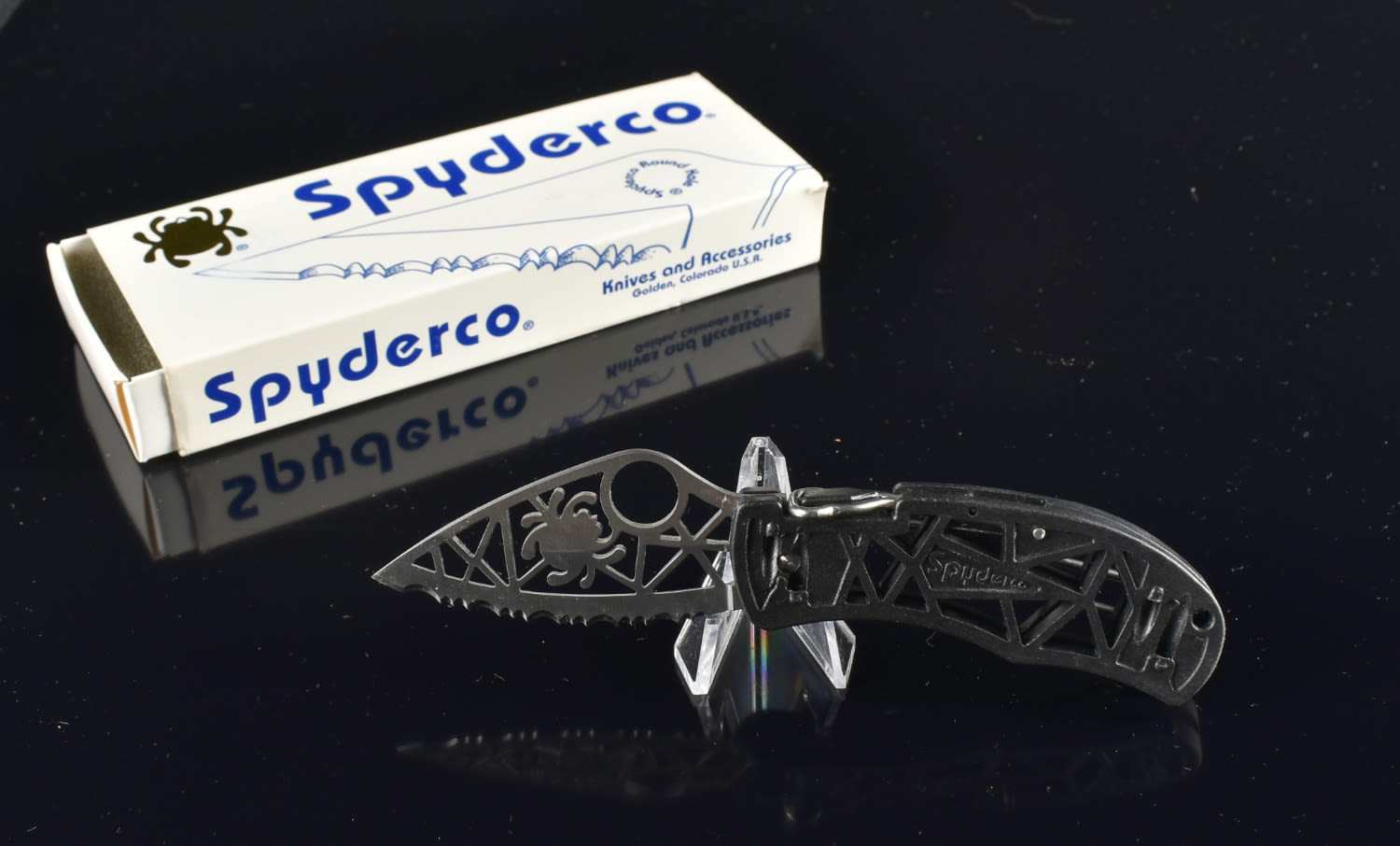 Rare knife with spiderweb cutout. Mint condition with original box. #C35SBK ‘Q’