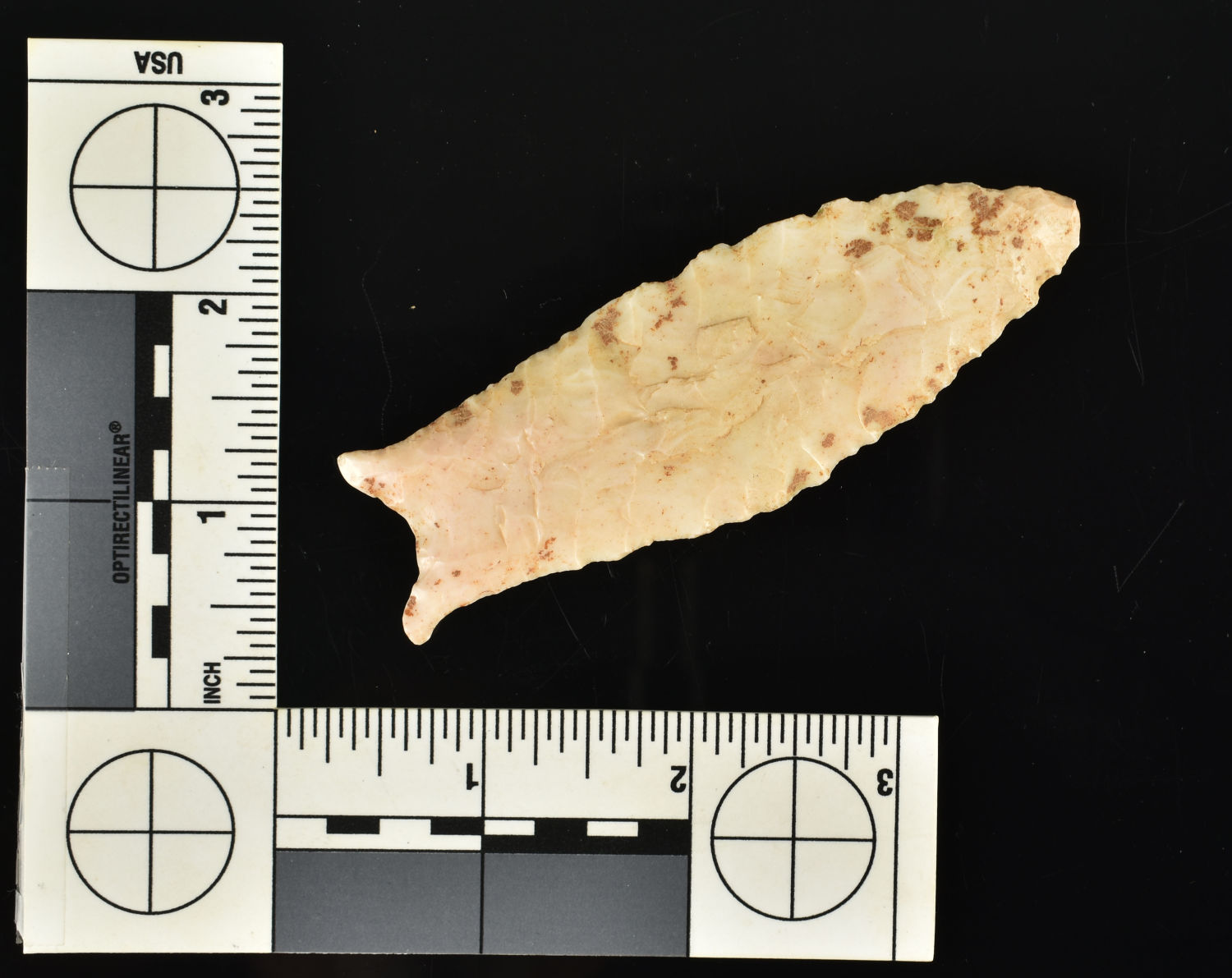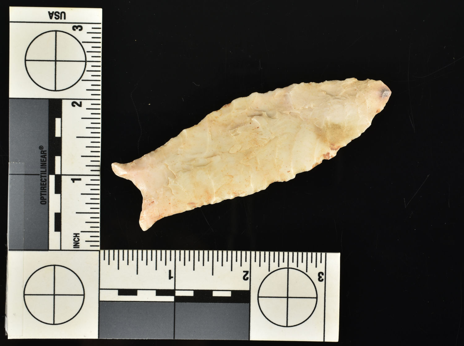 St. Clair Co., Illinois example. Extremely well made of Burlington Chert. Quite thin and symmetrical.