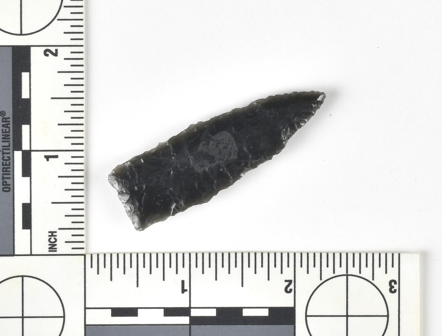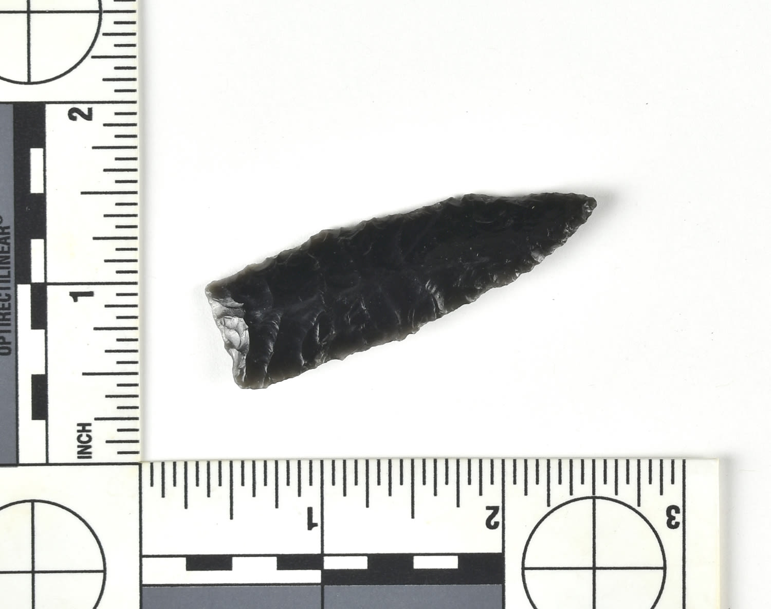 Nice example in partially translucent obsidian from Humboldt Co., Nevada. Found by Orren Grafton Spencer Sr. in the 1920’s. Rogers COA (2003), Earthworks COA (2008), Stermer (2007) COA’s. Ex Michael Hough, John Loke Collections.
